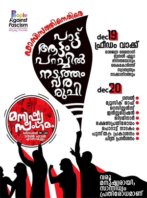 വര്ഗീയ ഫാസിസ്റ്റുകള്ക്കെതിരായ പോരാട്ടത്തിന്റെ മുന്നില് എന്നും ഇടതുപക്ഷമുണ്ടായിരുന്നു. രാജ്യത്ത് അനുദിനം വര്ധിച്ചുവരുന്ന അസഹിഷ്ണുതക്കും മത വര്ഗീയ ഫാസിസ്റ്റ് പ്രവണതകള്ക്കുമെതിരെ കേരളത്തിലെ മതേതര ജനാധിപത്യ, പരിസ്ഥിതി, രാഷ്ട്രീയ, മനുഷ്യാവകാശ പ്രസ്ഥാനങ്ങളുടെ സംയുക്താഭിമുഖ്യത്തില് 'മത വര്ഗീയ ഫാസിസത്തിന് എതിരെ മനുഷ്യ സംഗമം' സംഘടിപ്പിക്കുമ്പോള് തീര്ച്ചയായും ഇടതുപക്ഷത്തിന്റെ പതാക വാഹകര് മുന്നിരയിലുണ്ടാവും. കേരളത്തിലെ എല്ലാ പുരോഗമന മനസുകളും 2015 ഡിസംബര് 19, 20 തീയതികളിലായി എറണാകുളം ടൗണ് ഹാളില് നടക്കുന്ന മനുഷ്യ സംഗമത്തില് നേരിട്ടും മനസുകൊണ്ടും പങ്കാളികളാവും രാജ്യത്തെ പ്രമുഖ രാഷ്ട്രീയ, സാഹിത്യ, സാംസ്കാരിക, മനുഷ്യാവകാശ പ്രവര്ത്തകരോടൊപ്പം കൈകോര്ക്കും. അസഹിഷ്ണുത നമുക്ക് വേണ്ട.